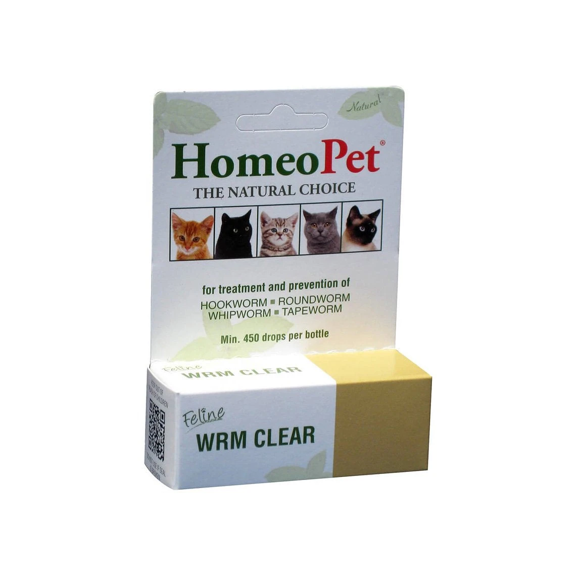 HomeoPet Wrm Clear is a broad spectrum wormer formulated to remove and prevent the infestation of round, hook and tape worms in dogs, cats, puppies and kittens. It is 100% natural, no food withdrawal and safe for all ages.