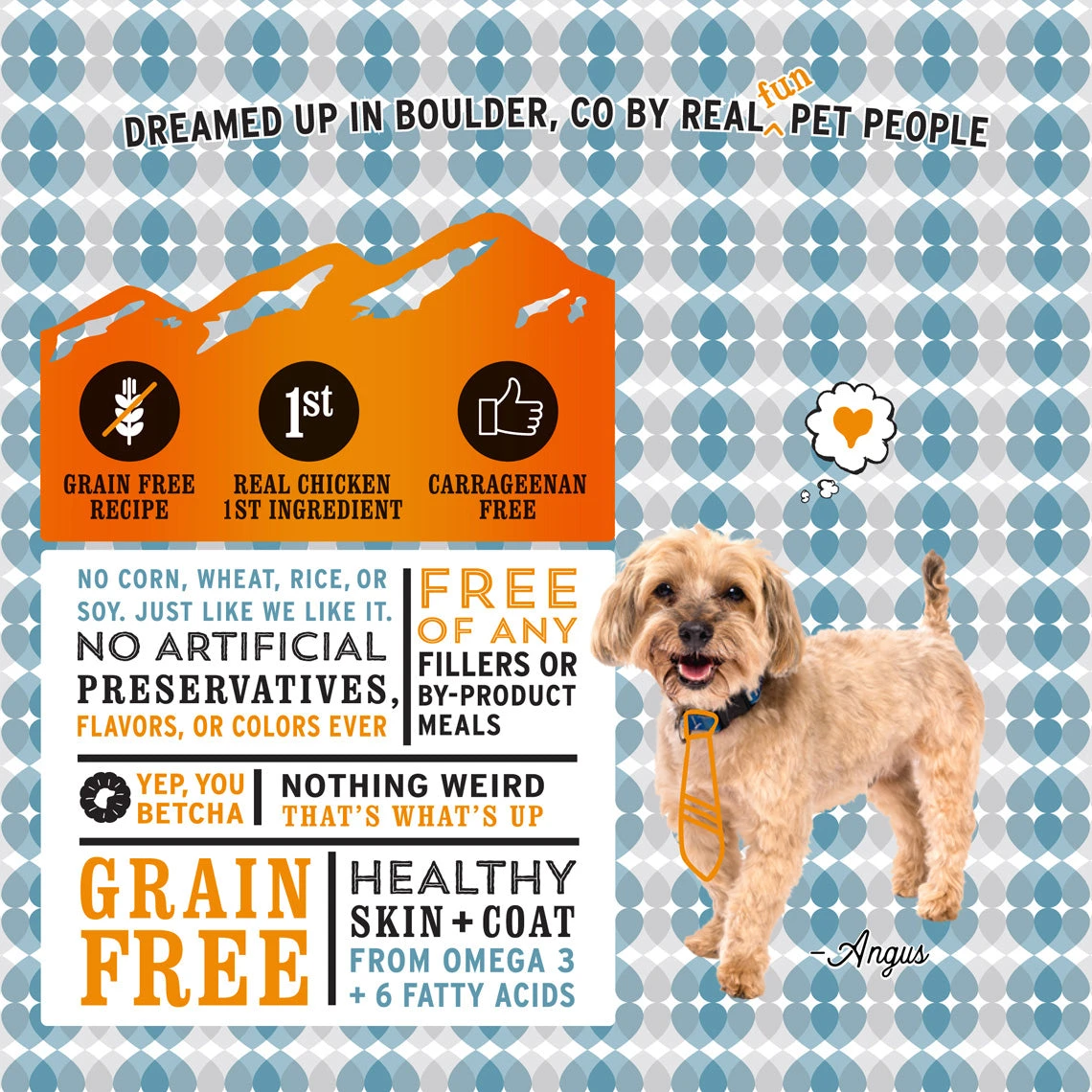 Children’s books cannot seem to agree on the noises that dogs make. Sometime it’s “bow wow.” Other times it’s “woof” or “arf” or “ruff.” But really, the only thing your dog will say after eating this grain free, protein packed “I and love and you” Stew Canned Dog Food is “Oh my dang. This is flippin’ phenomenal.”