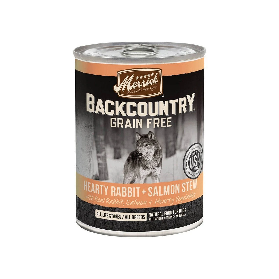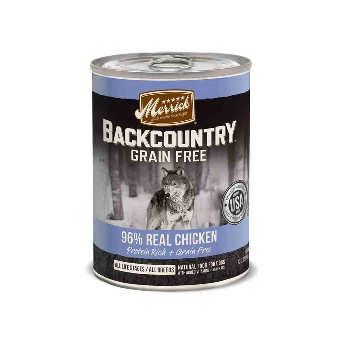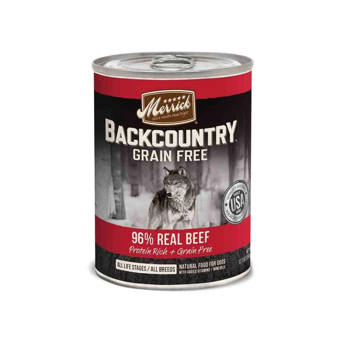 Merrick Backcountry 96% Real Meat Canned Dog Food is specially formulated to celebrate the high protein, grain-free diets of modern dog’s ancestors.