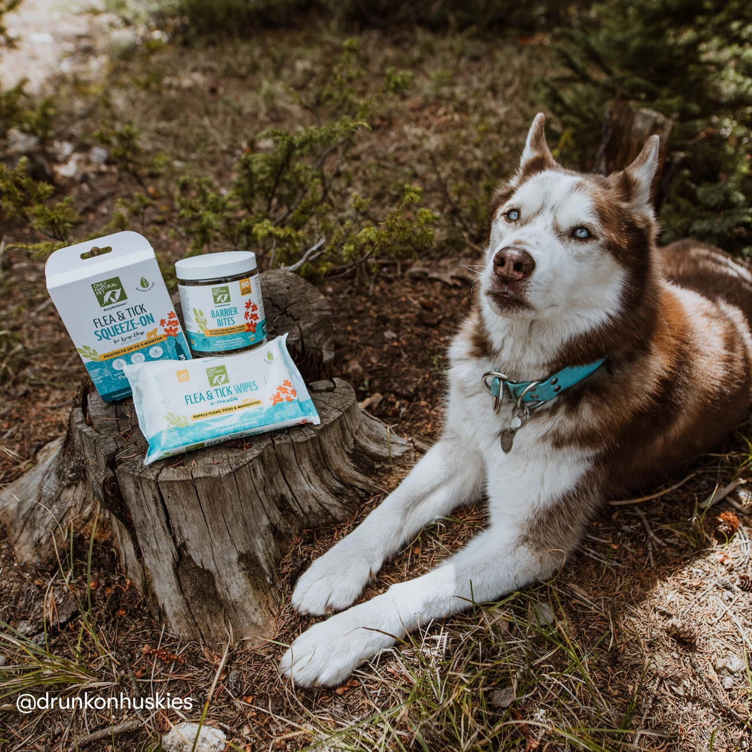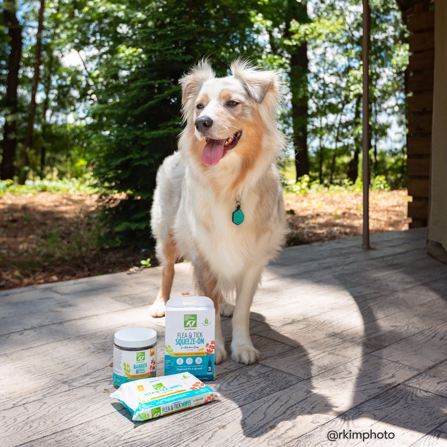 This kit combines our topical EasyDefense Flea & Tick Squeeze-On to repel fleas & ticks from your pet’s fur with our EasyDefense Barrier Bites bacon-flavored soft chews to repel fleas & ticks from the inside out using the power of garlic and brewers yeast. And for outdoor adventures in tall grass or woods, keep the EasyDefense Flea & Tick Wipes on hand to add an extra layer of protection. Each pack contains 40 biodegradable towelettes which are infused with geraniol and peppermint, making them a safe and convenient way to naturally repel pests.