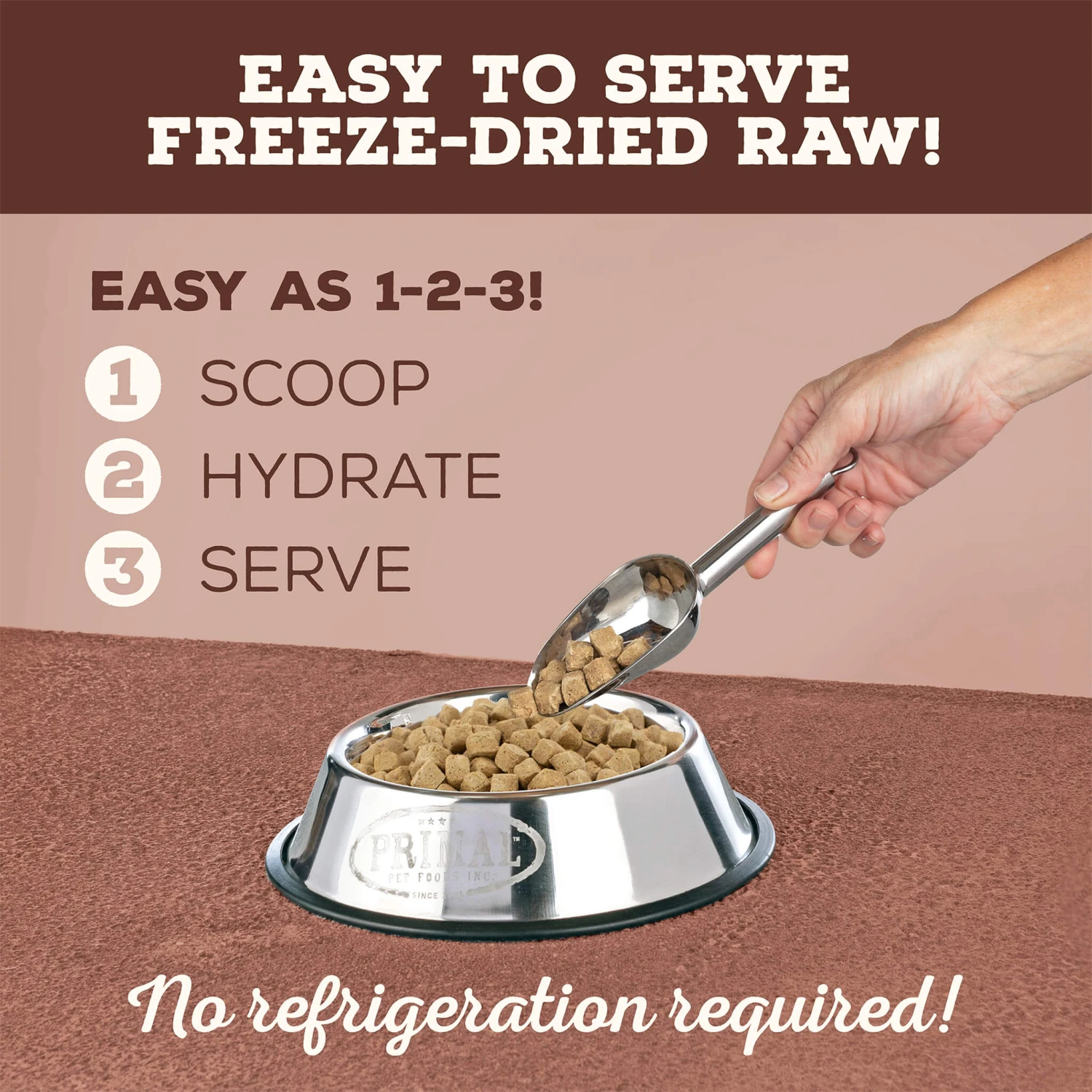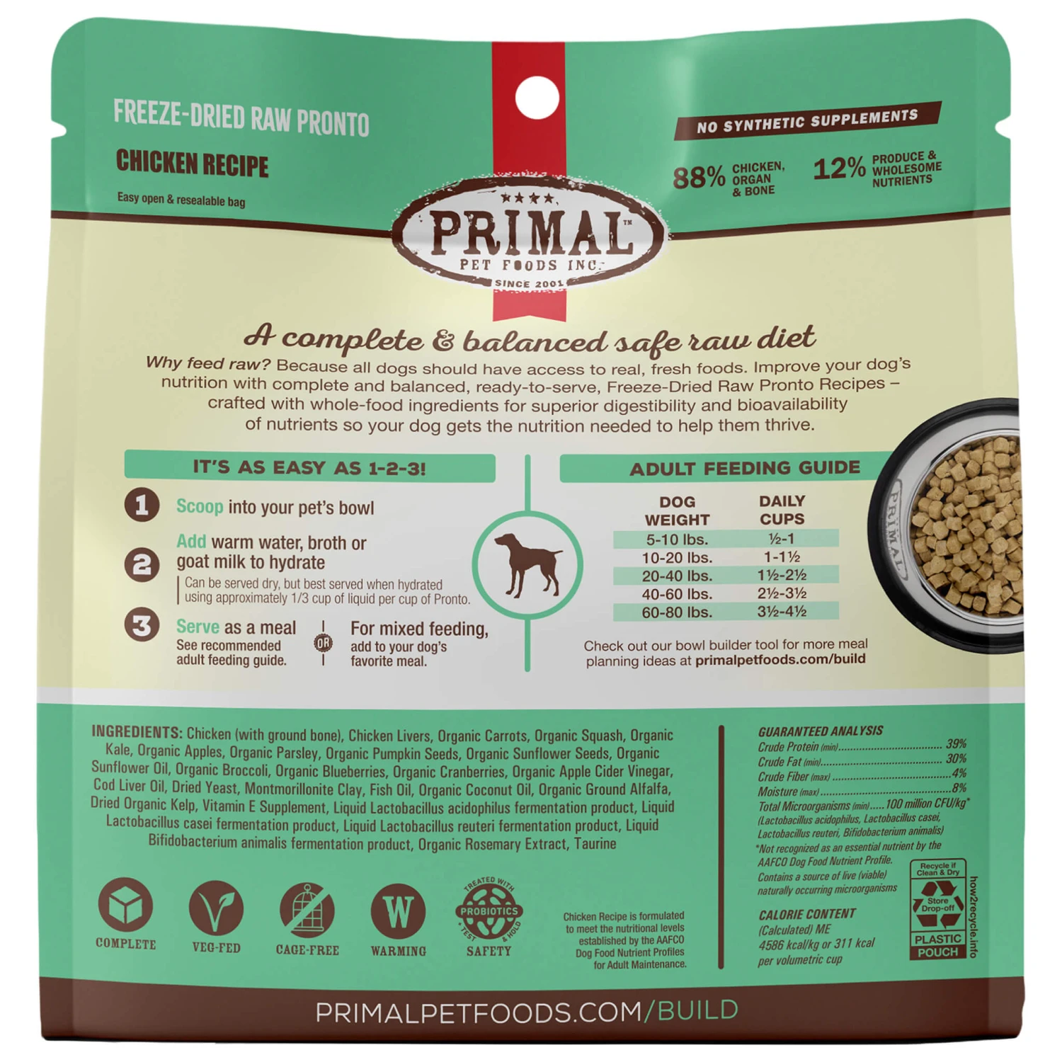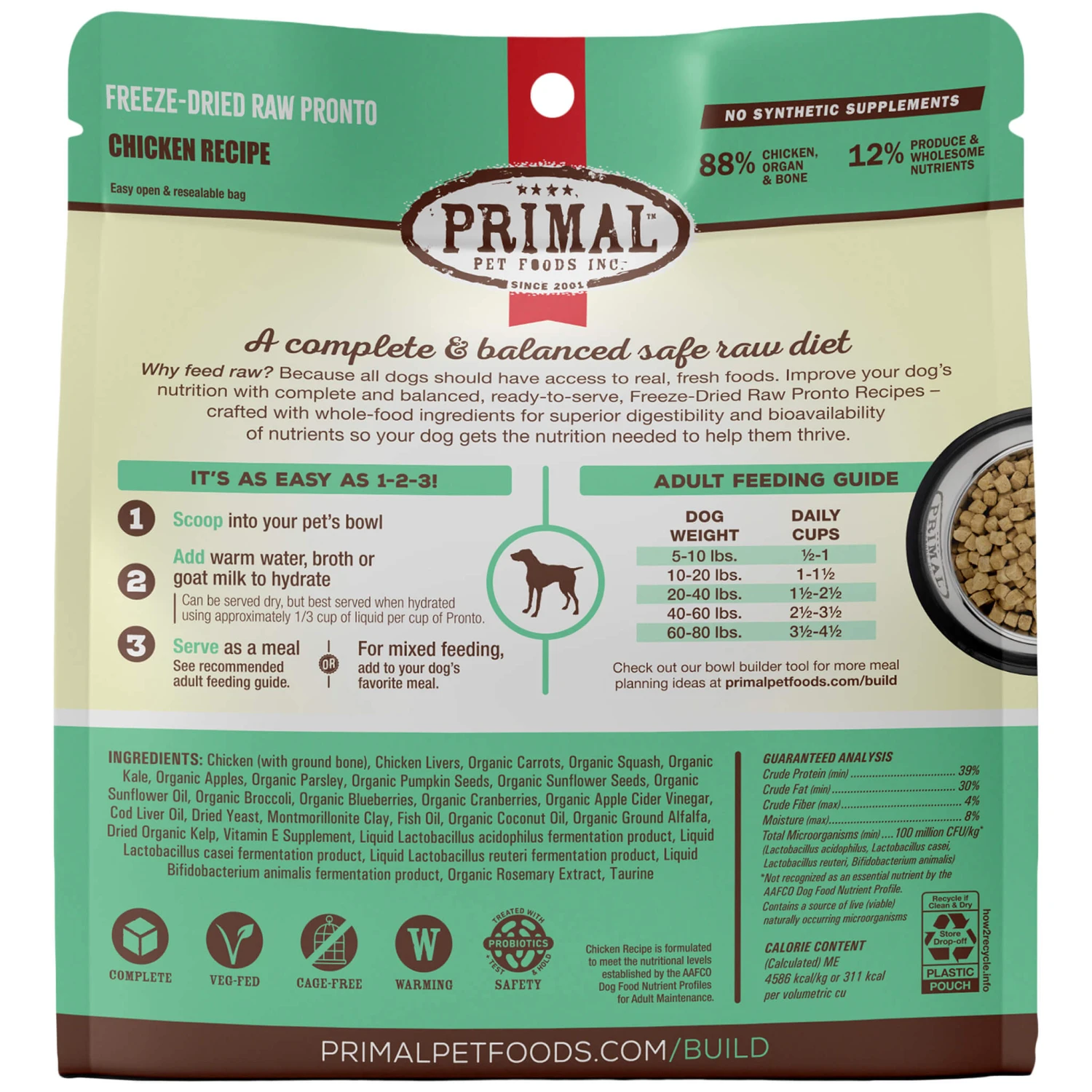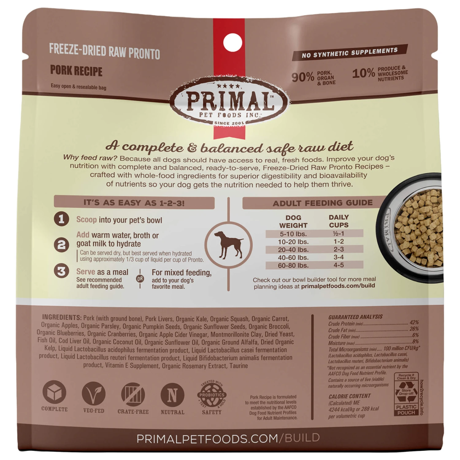 Give your dog a complete and balanced food without synthetic vitamins or minerals with Primal Pet Foods Pronto Freeze-Dried Raw Dog Food.