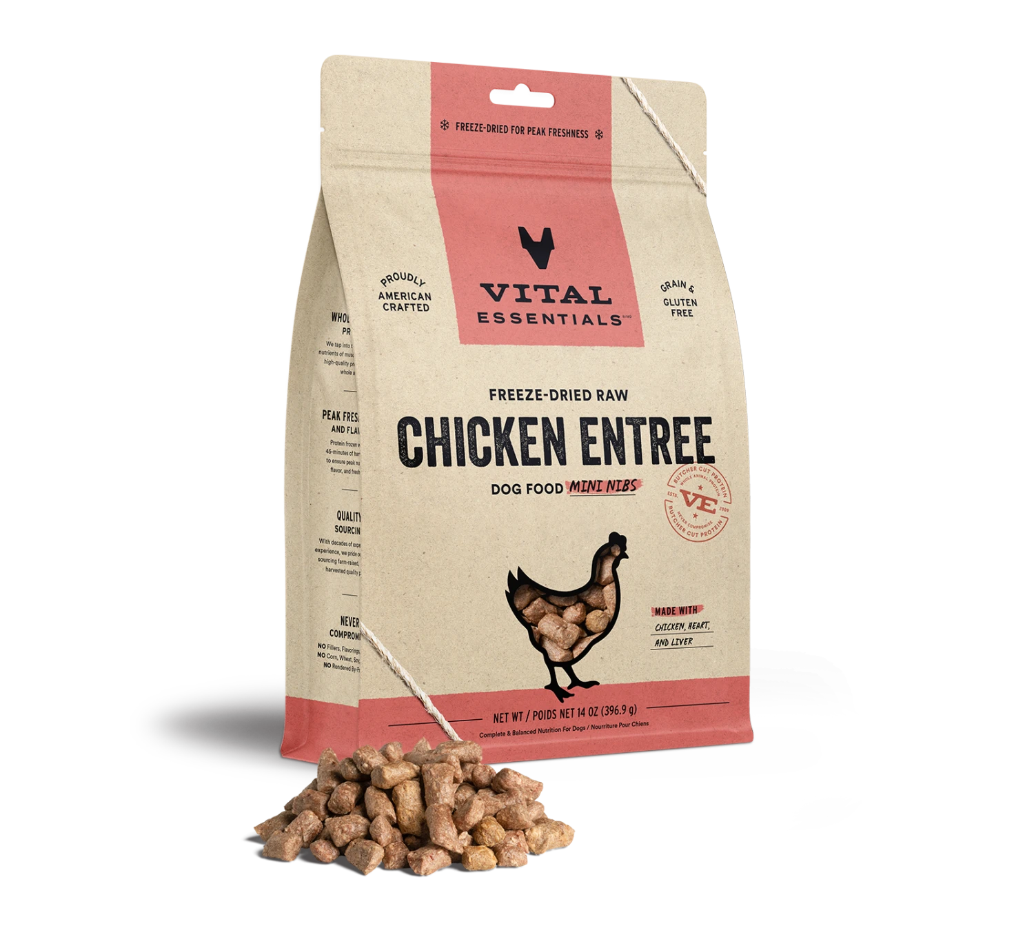 Just like prey in the wild, a Vital Essentials Freeze Dried Nibblets diet provides the essential, natural nutrition necessary for your dog’s peak performance, maintaining top body condition and building a foundation for a proactive health program. Dogs thrive on Vital Essentials nutritionally balanced raw diet entrees.